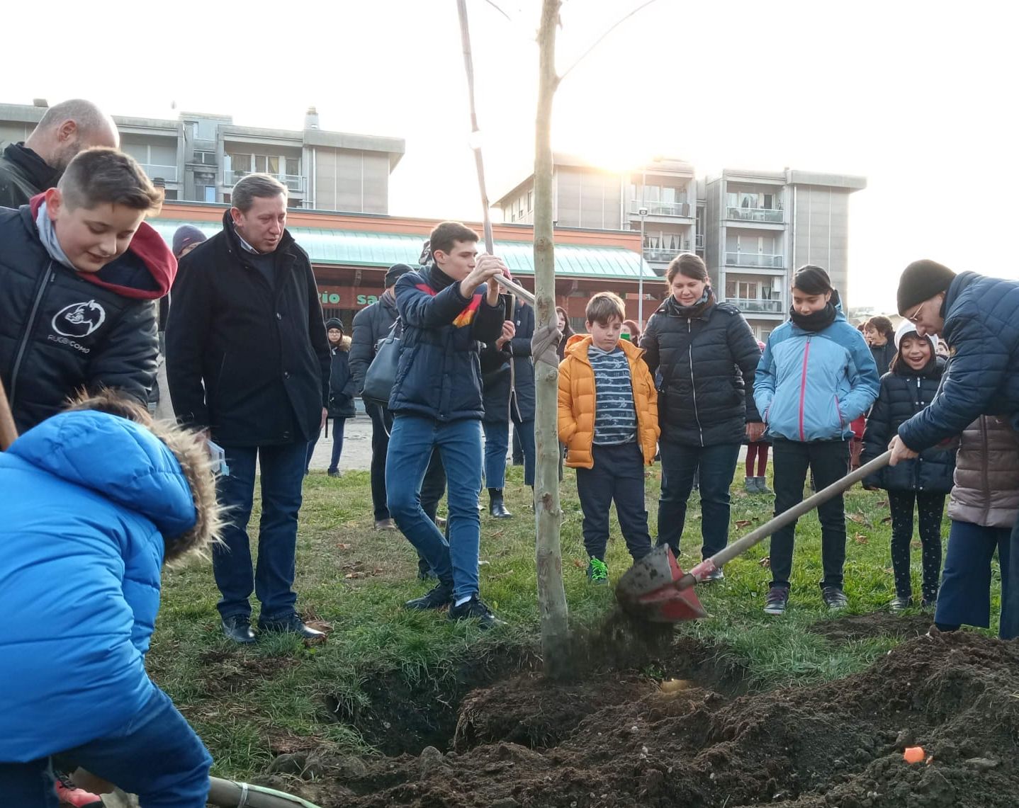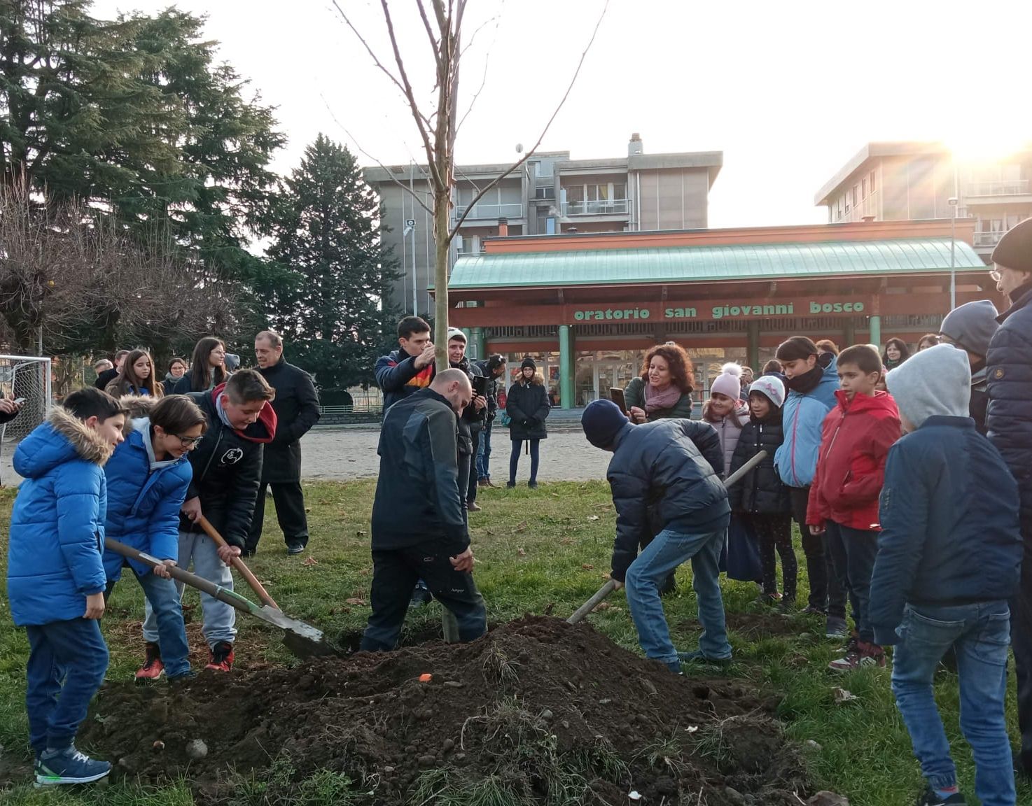 Domenica 18 dicembre La Festa di Natale è iniziata con la posa di un Platano in Oratorio e un Pino Marittimo alla Grotta della Madonna, dono di don Luigi a ricordo del suo 40° di ordinazione sacerdotale.