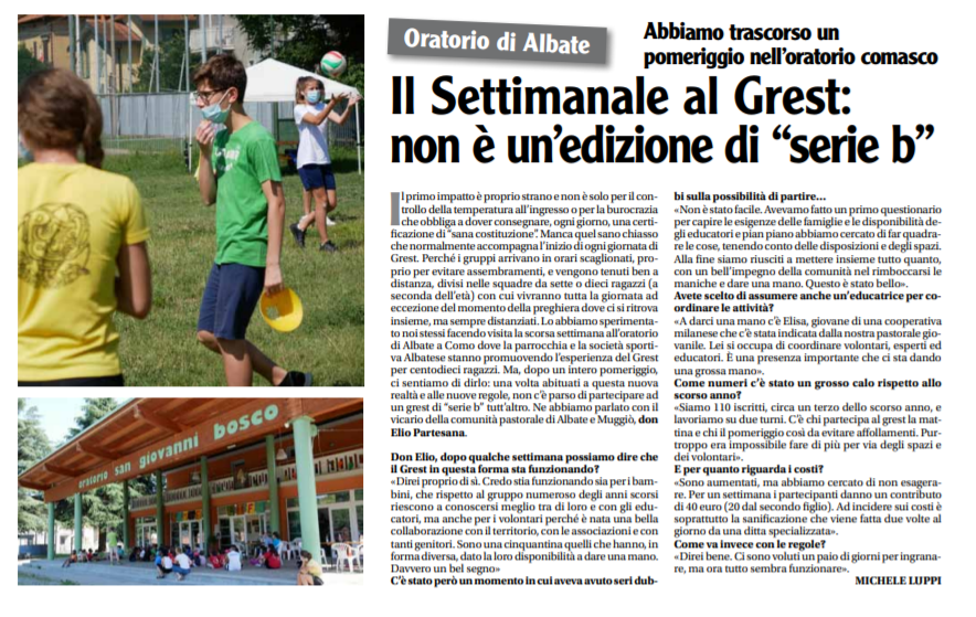 GRAZIE a tutti i volontari maggiorenni che capitanati da don Elio, Elisa, Francesco e Simone ogni giorno per tanti giorni hanno guidato i gruppi di bambini e ragazzi,